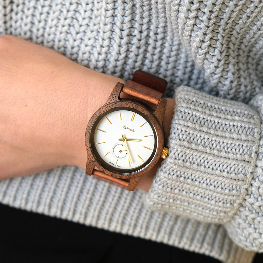 Our wooden watches combine sustainable materials with reliable Japanese or Swiss movements to create timepieces that are both natural and durable. Whether you are looking for a meaningful anniversary gift, a personalized engraved watch, or a distinctive everyday watch, Tense offers timeless designs for both men and women.