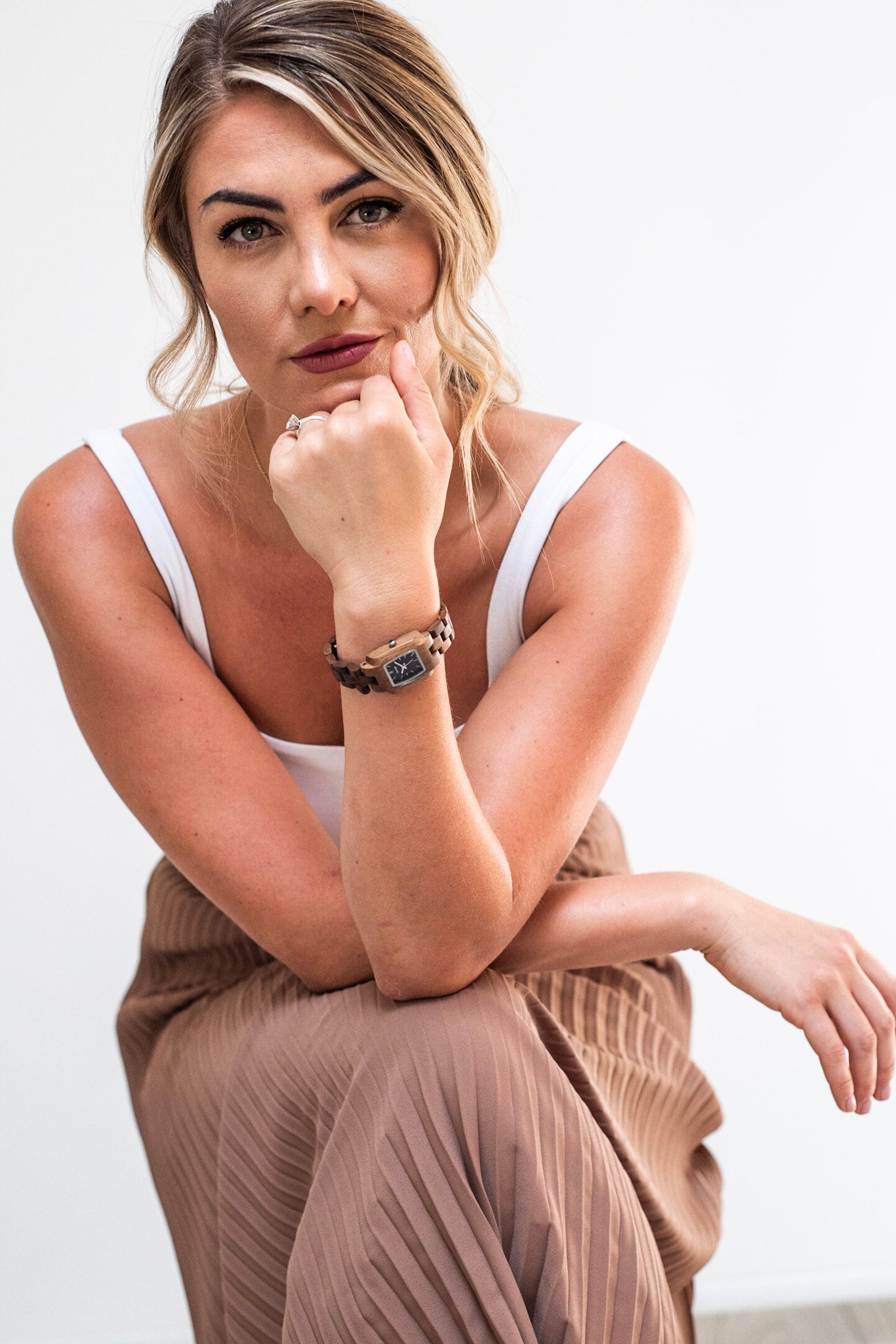 This women's watch shows hourly markers on a unique rectangular dial. The Pender is apart of our Mini Collection. This watch is made from 100% recycled and reclaimed wood, with Miyota watch movement from Japan and is adjustable in size with stainless steel crown and clasp. All Tense Watches are Proudly Made In Canada.