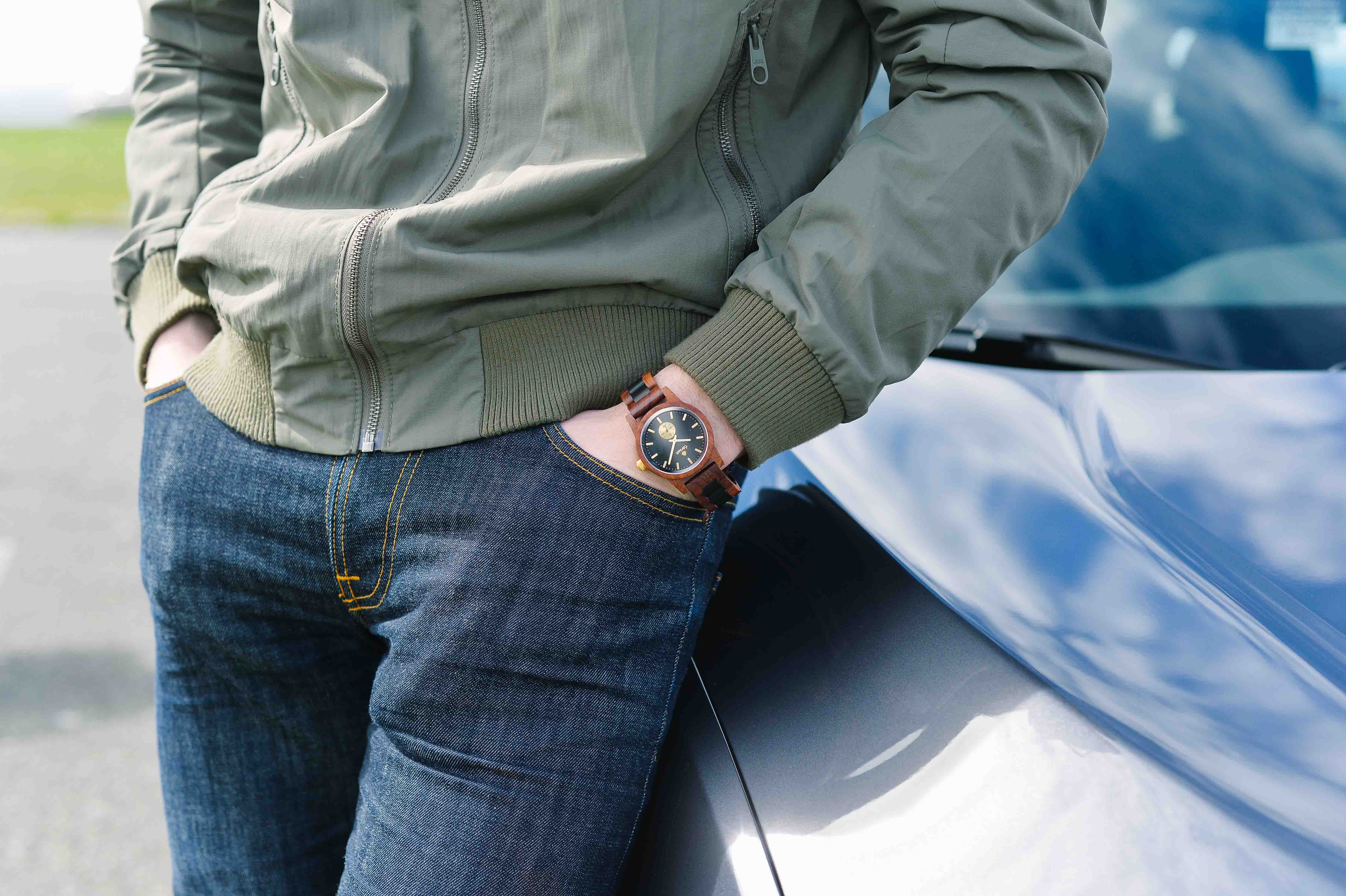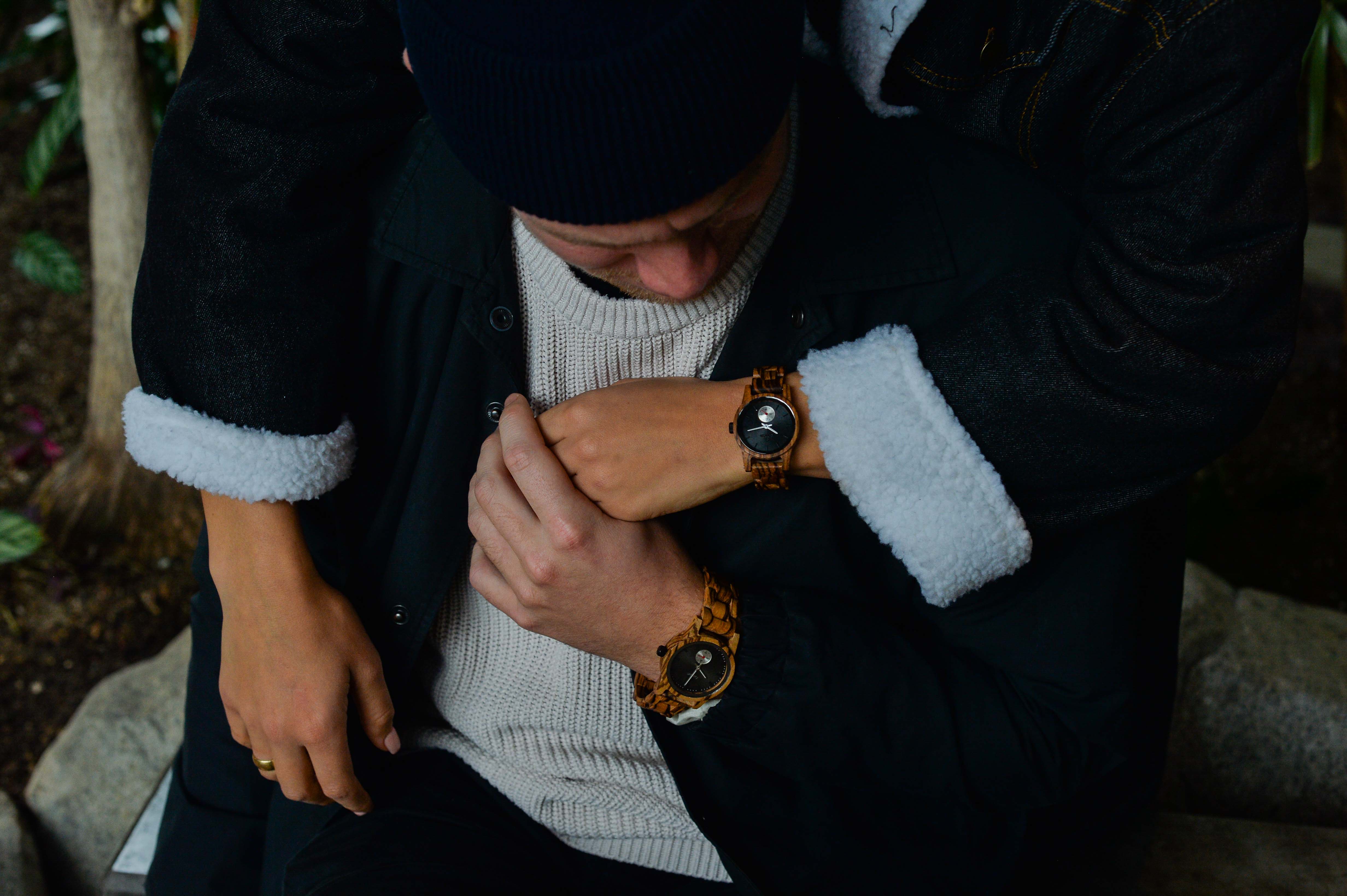 This unisex watch shows hour, minute, and second markers on a round dial. The Hampton is made from 100% recycled or reclaimed wood, with Miyota watch movement from Japan and is adjustable in size.