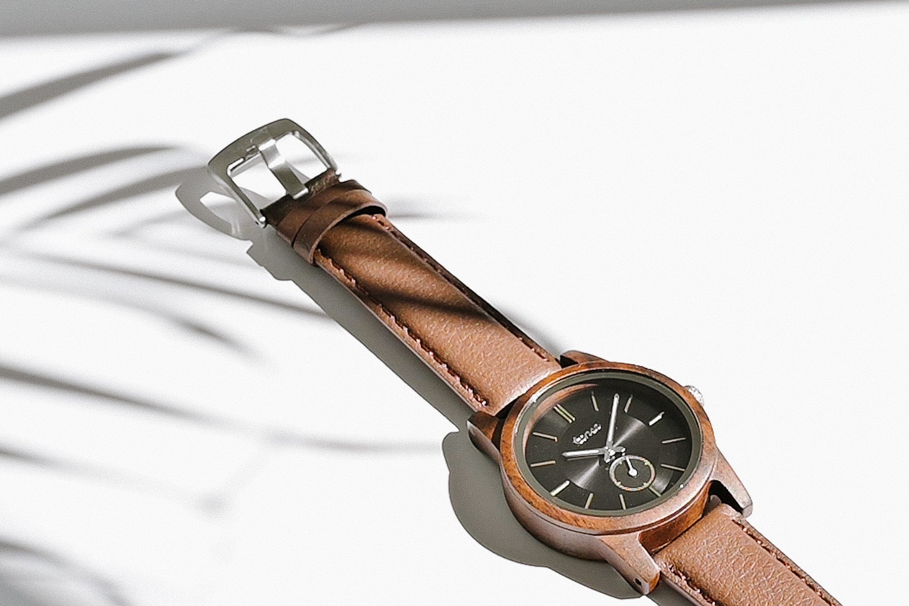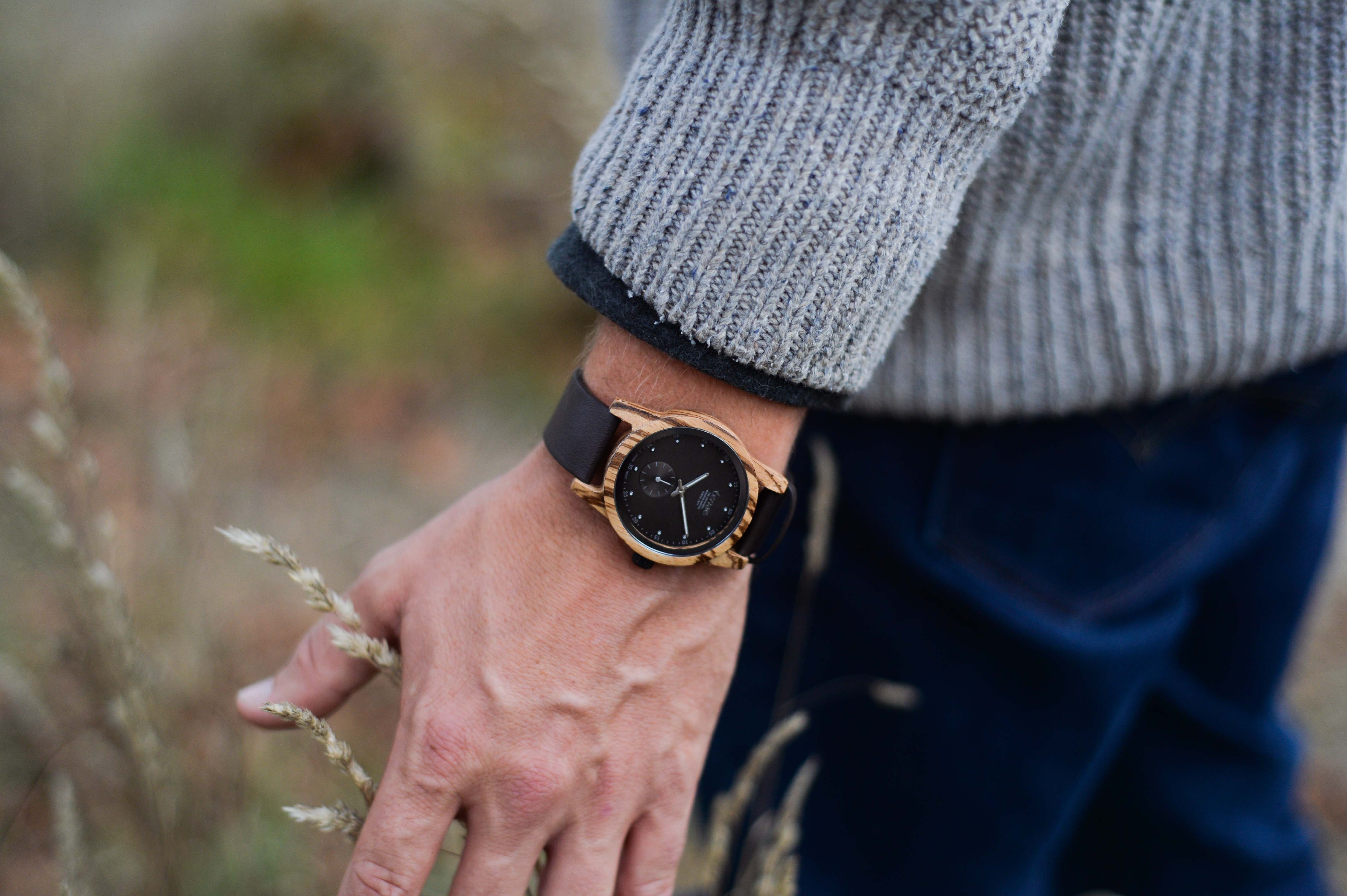 This unisex watch shows hour, minute, and second markers on a round dial. The Hampton II Vegan Leather is made from 100% recycled or reclaimed wood with Miyota watch movement from Japan. The strap is made of vegan-friendly leather and features stainless steel clasp.