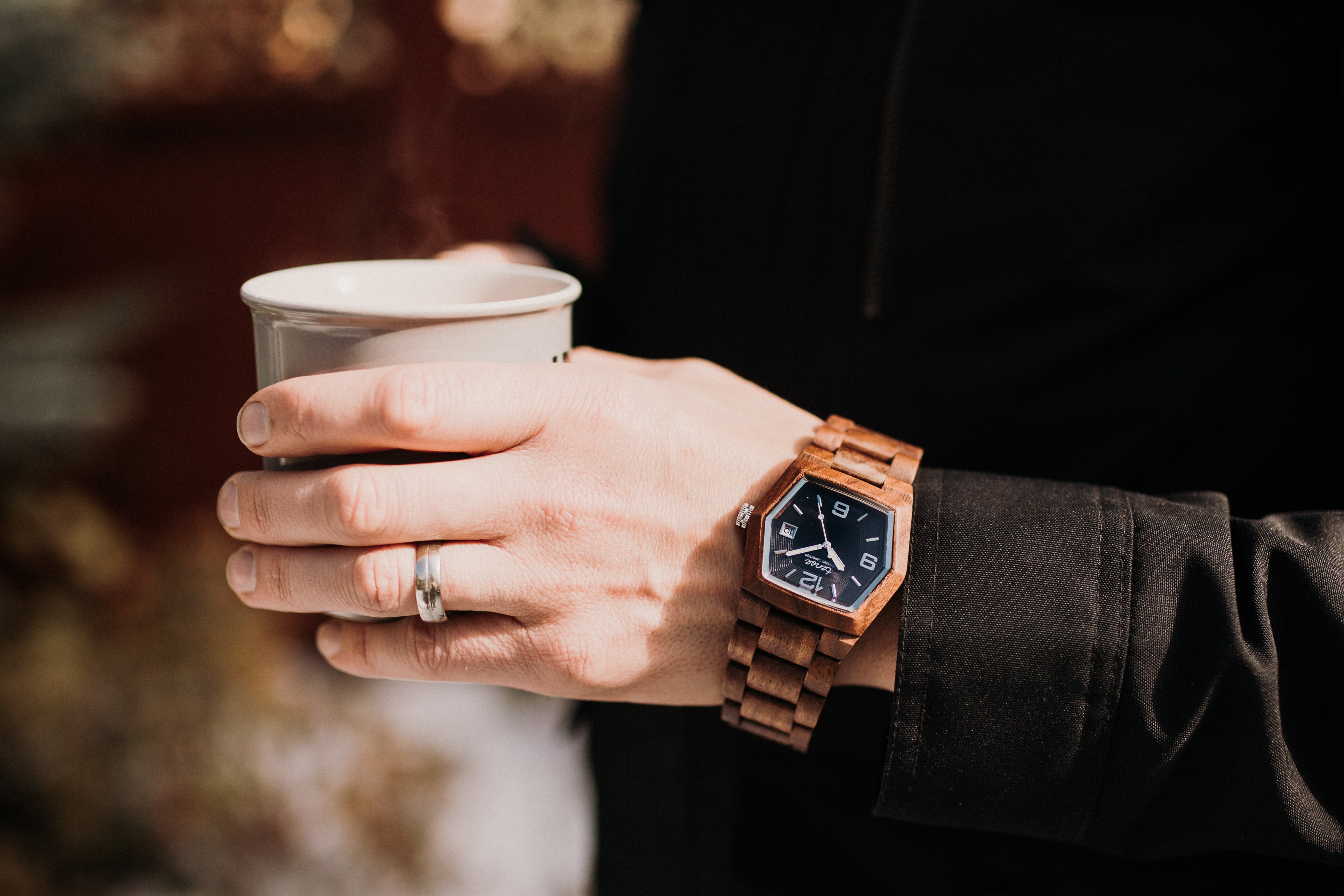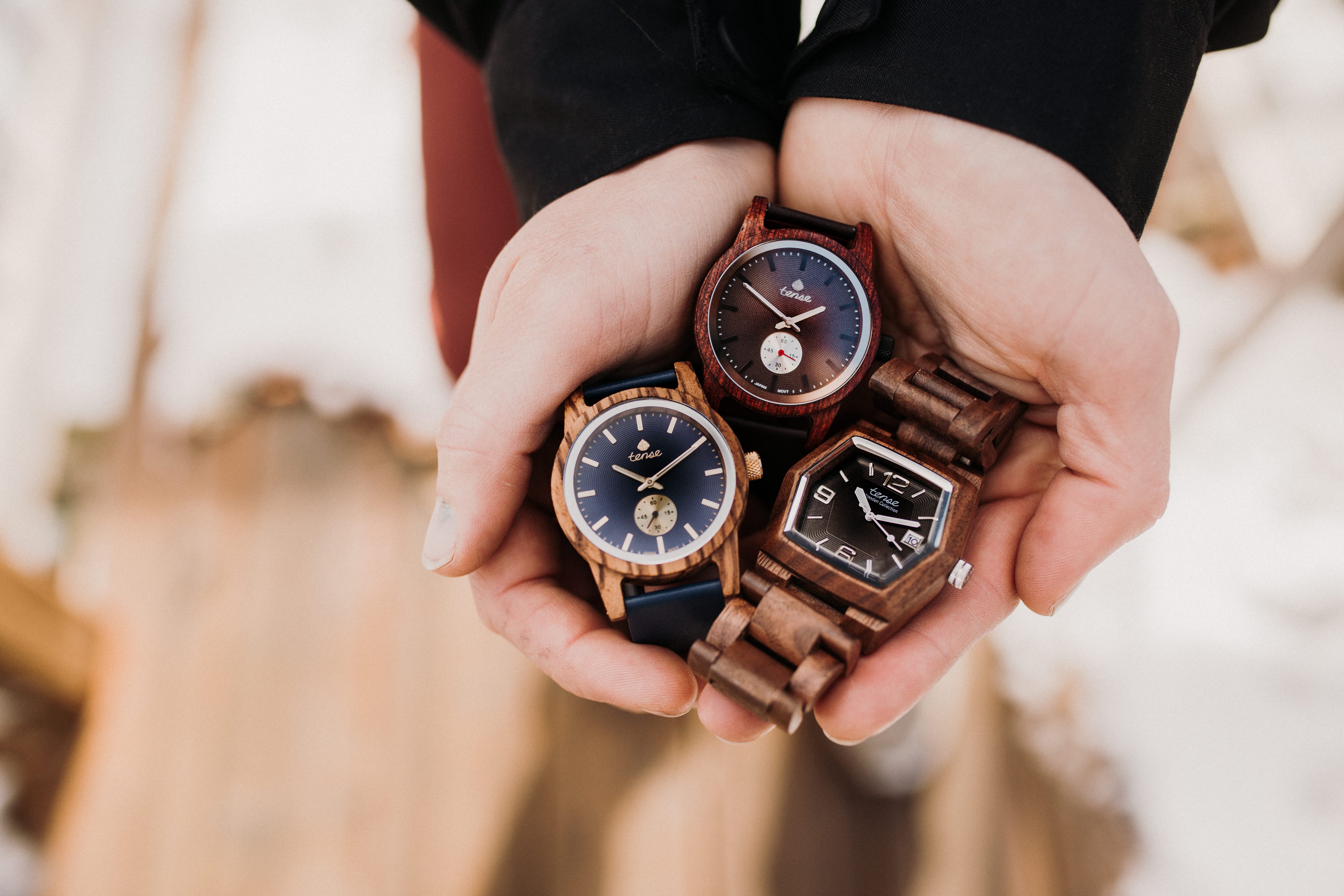 This unisex watch shows hour, minute, second markers and the calendar date on a hexagon face. The Kootenay is made from 100% recycled and reclaimed wood, with Miyota watch movement from Japan and is adjustable in size with stainless steel crown and clasp.